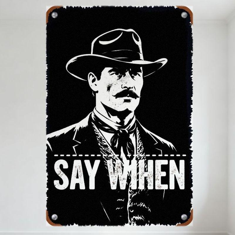 Vintage Black & White Tin Sign 'SAY WHEN' with Distressed Man In Hat Suit Cravat - Rustic Metal Wall Decor for Bar Man Cave Cafe