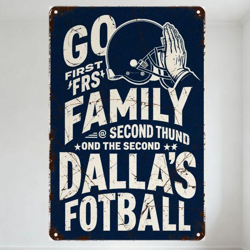 Vintage 'GO FIRST FRS' Football Family Metal Tin Sign with Helmet & Stars, Distressed Rusty Wall Decor for Man Cave, Bar, Home,