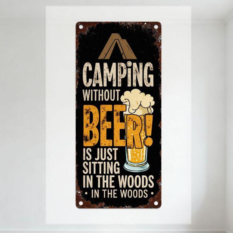 Vintage Camping Beer Metal Tin Sign Rustic Wall Decor with Tent Beer Glass Art for Bar Home Man Cave Garden Outdoor Decoration