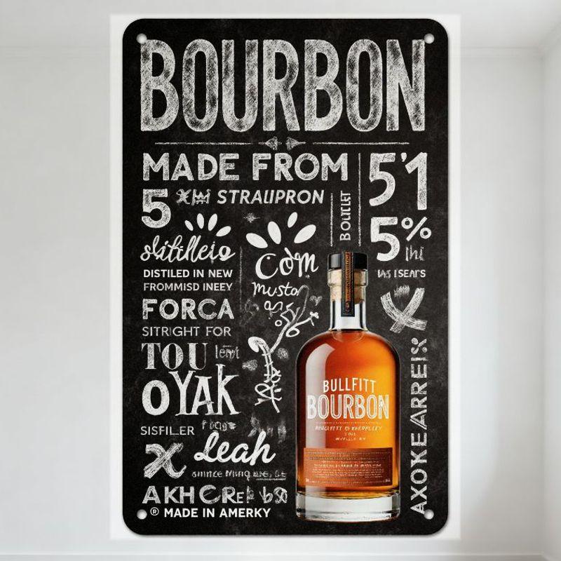 Bourbon Metal Tin Sign Chalkboard Style with Vintage Illustration & Text for Bar Restaurant Man Cave Home Decor
