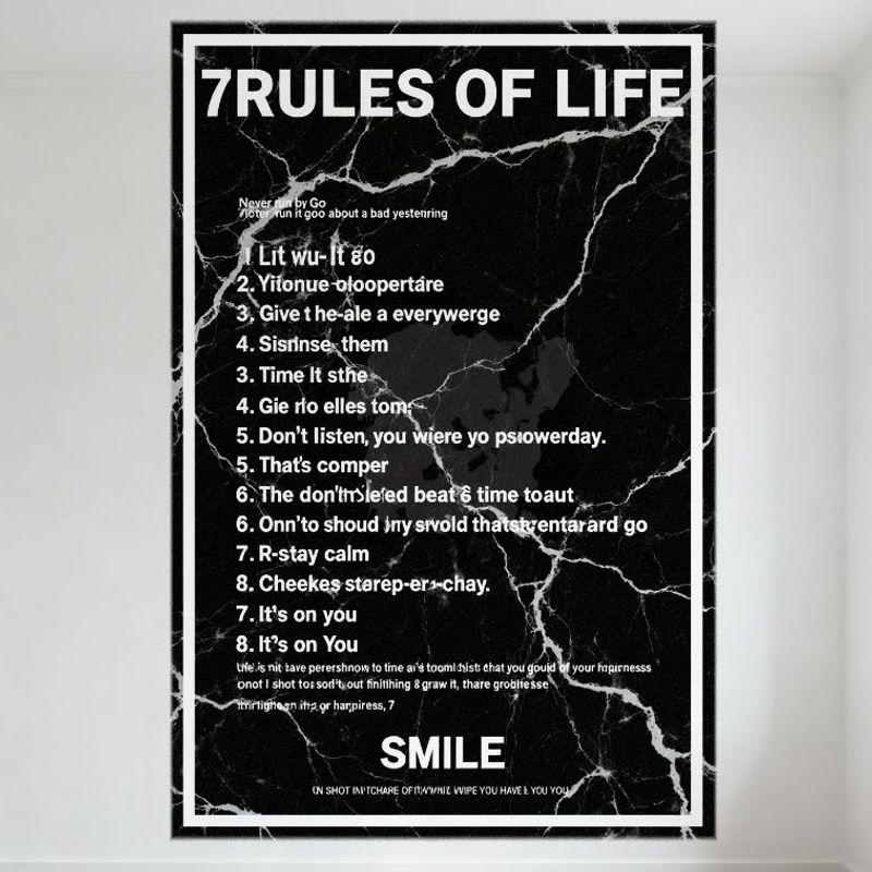 7 Rules of Life Black White Marble Texture Metal Tin Sign Edgy Street Art Graffiti Style Wall Decor for Home Bar Man Cave Aesthe
