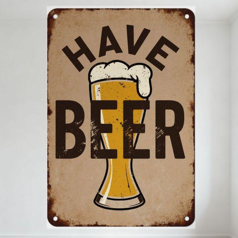 Vintage 'Have Beer' Metal Tin Sign with Rust Edge Retro Pub Style Wall Decor for Bar Cafe Man Cave Home Art Decoration