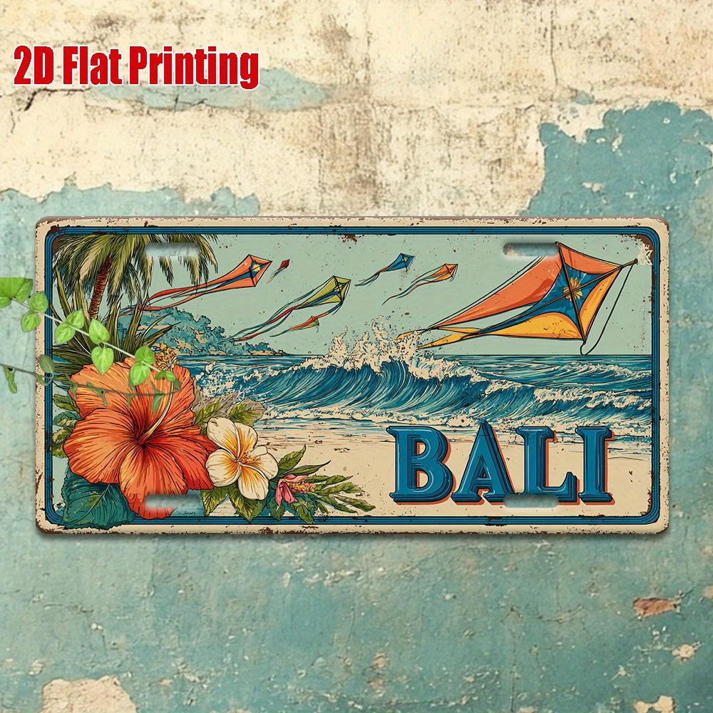 Printing, , Vintage Metal License Plate, Outdoor Wall Art , BALI Aluminum Sign with Tropical Surf and Kite Scene, Great for H