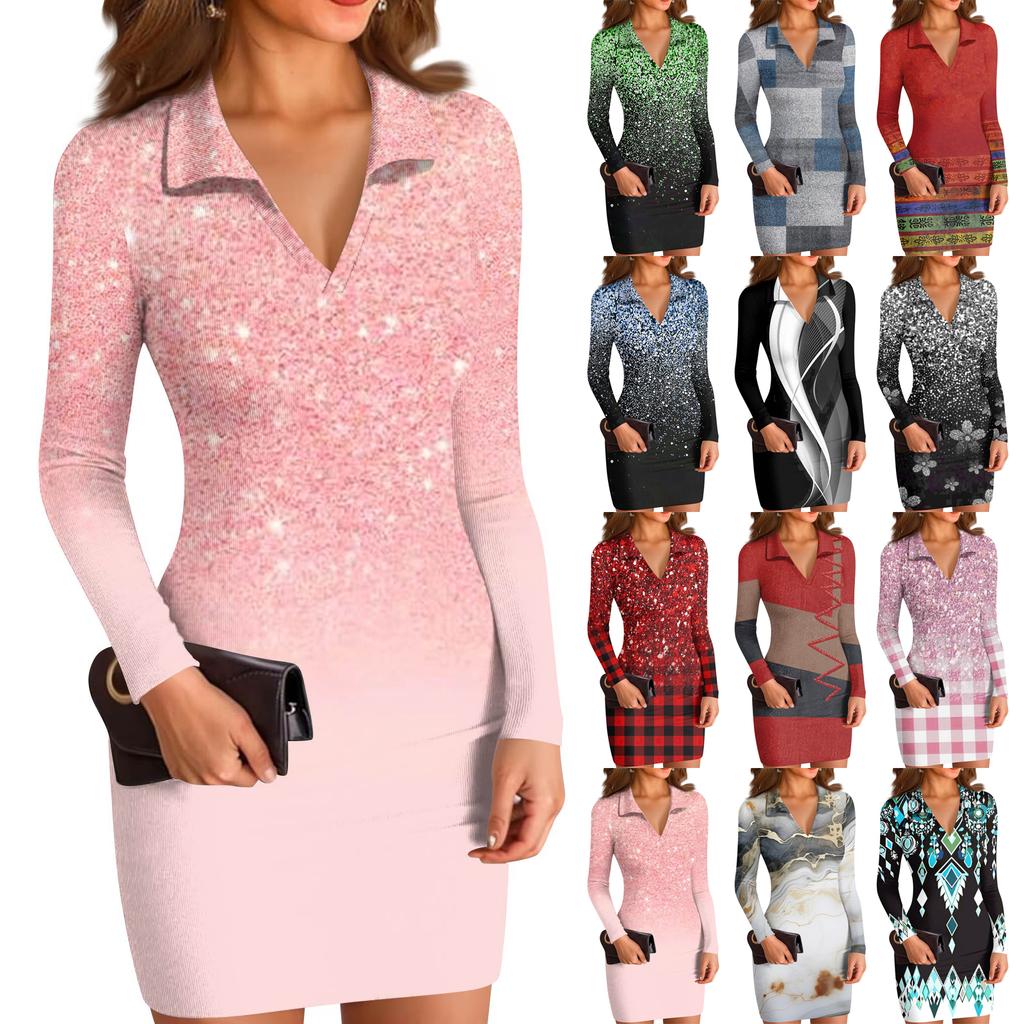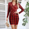 Women's V-neck Casual Print Long-sleeved Fitted Dress