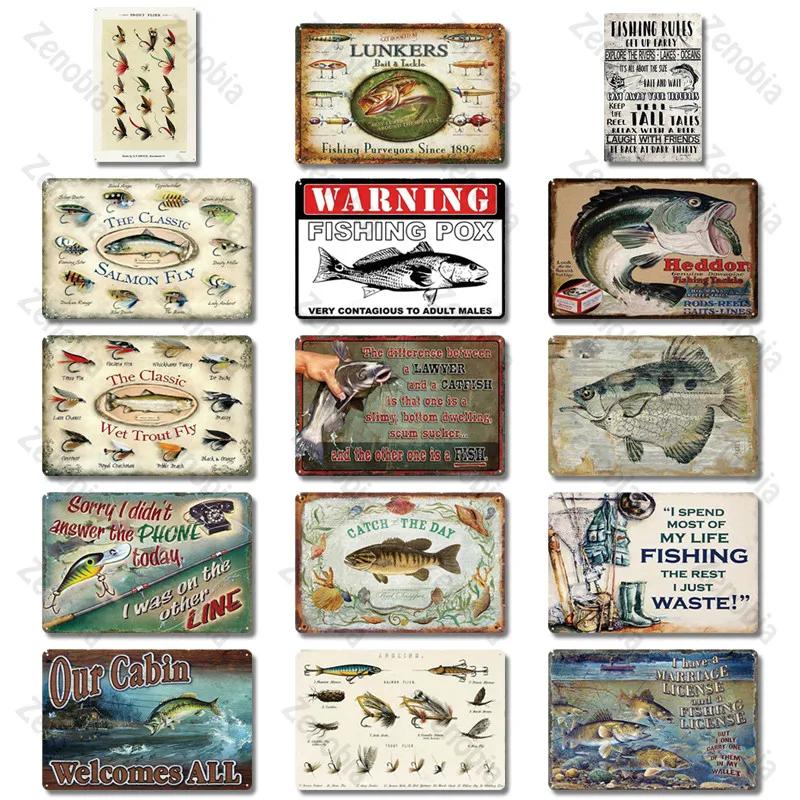 Fishing Decor Vintage Tin Sign Retro Metal Sign Wall Decor for Lake House Cabin Fishing Gift Metal Plate
