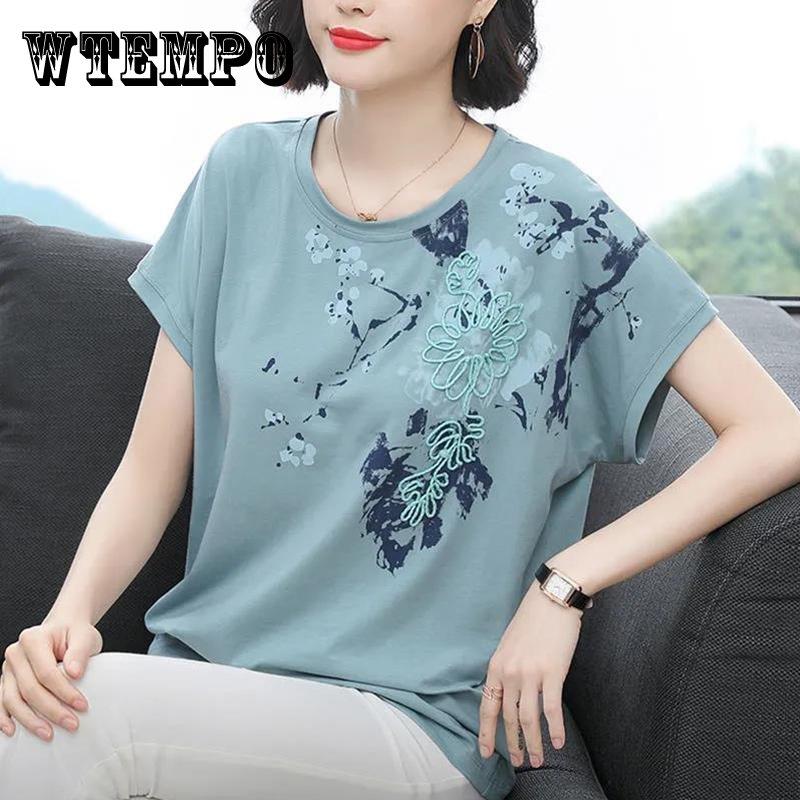 Cotton Floral Short Sleeve T-Shirt Ladies Summer Loose Large Size Fat Crew Neck TopThere are more brand-new and high-quality products for you to choose from!