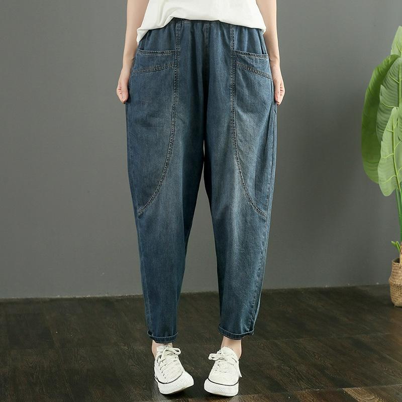 Elastic Waist Denim Harem Pants Women Loose Large Size Fat Mm Women's Pants Denim Nine-point Pants Women