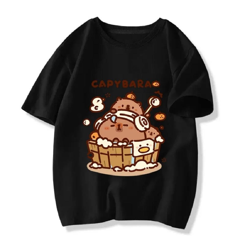 Children's Clothing Kawaii Cartoon Capybara Print Short Sleeve T-shirt Cute Capibara Boy And Girl 100%Cotton Fashion Tops Tee