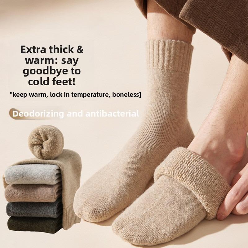 Men's Autumn and Winter Thermal Insulation Wool Ring Lock Heat Boneless Sleep Deodorizing Antibacterial Wool Tube Socks