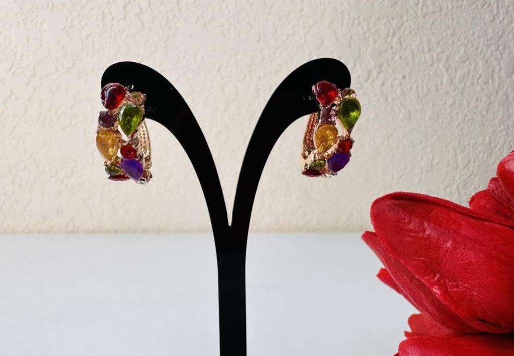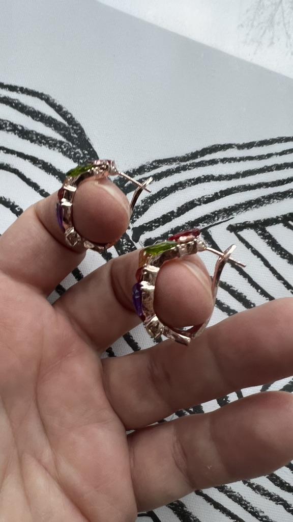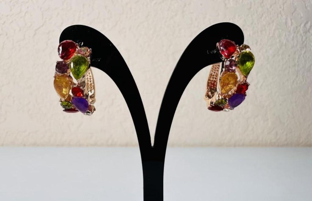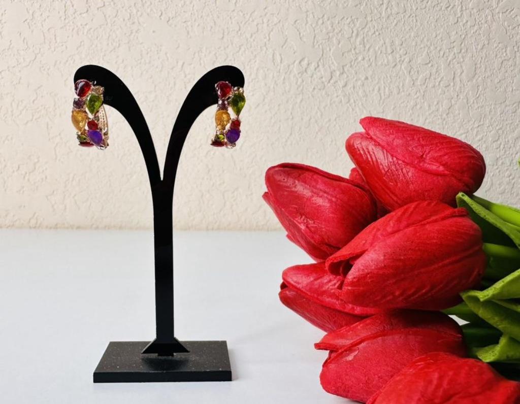 I bought these earrings and I'm simply thrilled with them! The teardrop design with the geometric crystal look gives them a special and impressive presence. The colorful hues of the cubic zirconia stones add an elegant and cheerful touch that suits almost any outfit.. What I especially liked was the quality of the materials – they are made of a stable alloy and last a long time, without losing their shine. Despite the impressive look, they are very comfortable to wear and not heavy on the ear, which makes them perfect even for long events.. In addition, they look luxurious and stylish, and everyone who sees them compliments them immediately. I feel that they add a lot of style to any outfit – both for festive occasions and when you want to add a little sparkle to everyday life. Definitely an item that is fun to have in my jewelry collection and I highly recommend it!