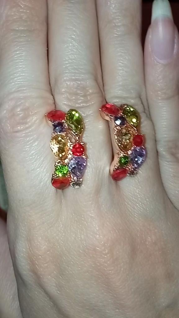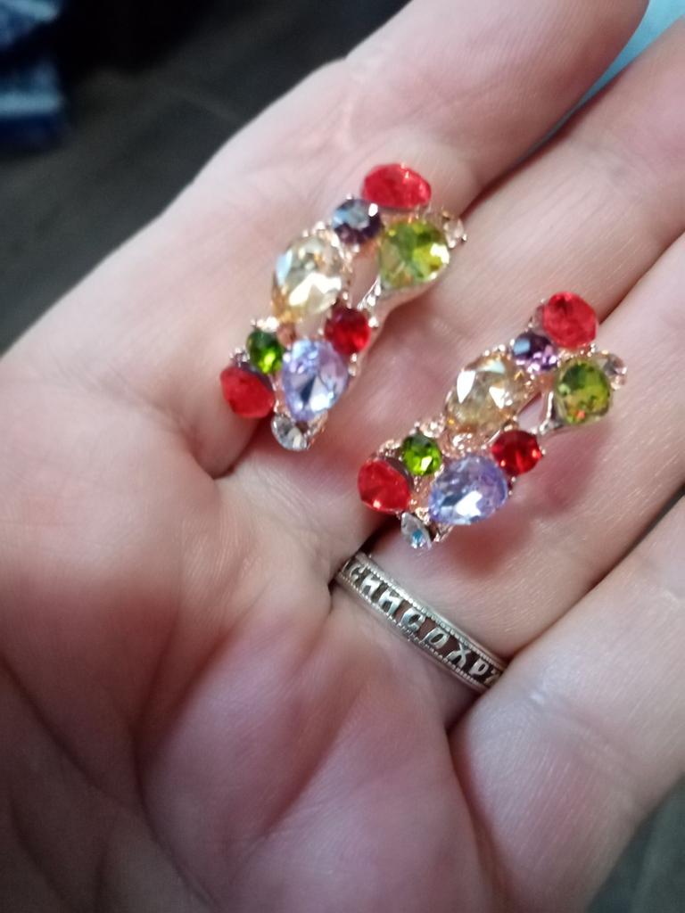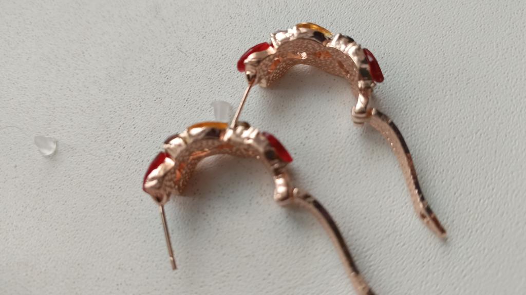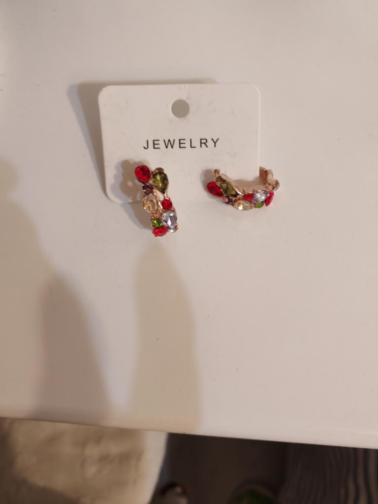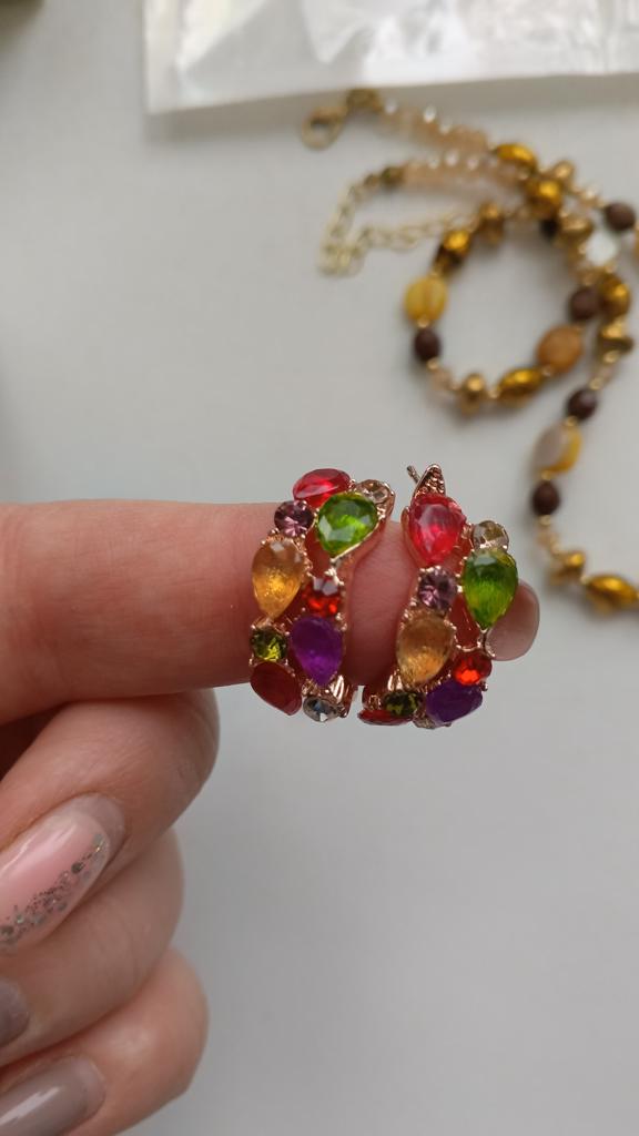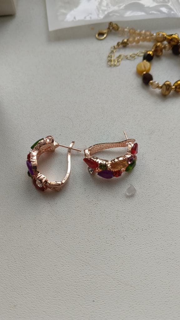EARRINGS Earrings with splendid colored crystals!🤩 arrived in Italy with tracked shipping in 20 days in a combined package. Fast shipping. Well wrapped in a sheet of bubble wrap, they arrived intact. packaging: They are supplied in a plastic bag without the cardboard backing. Excellent value for money. The metal color is gold in zinc alloy. Back closure: sturdy metal with silicone caps. No glue stains and no defects. the crystals are well set and luminous The purchase is recommended👌👌👌👌👌