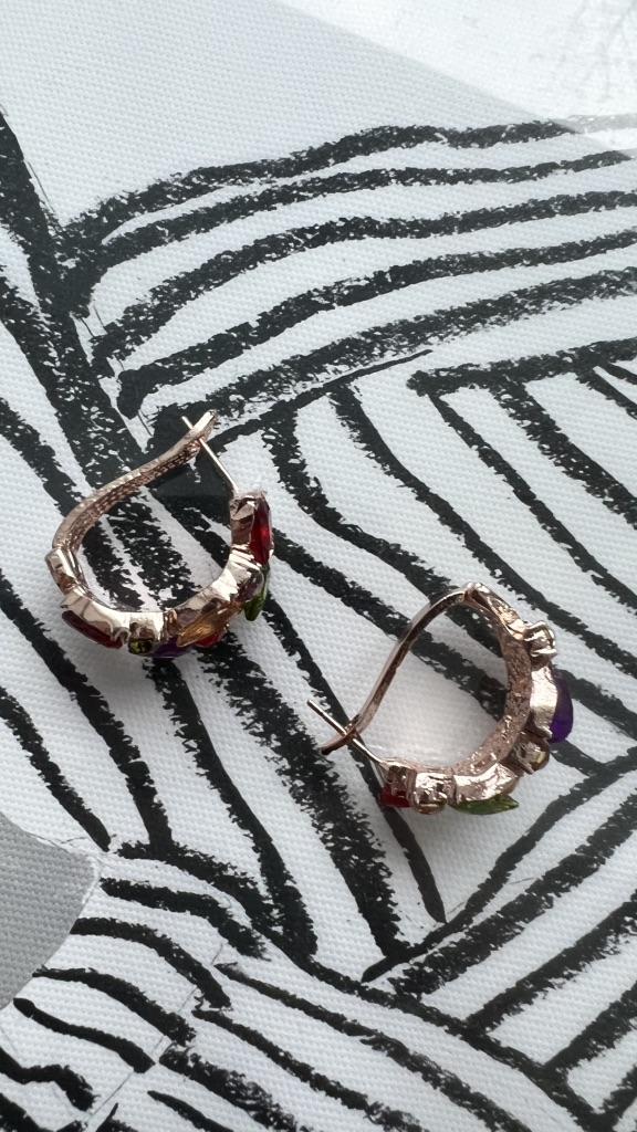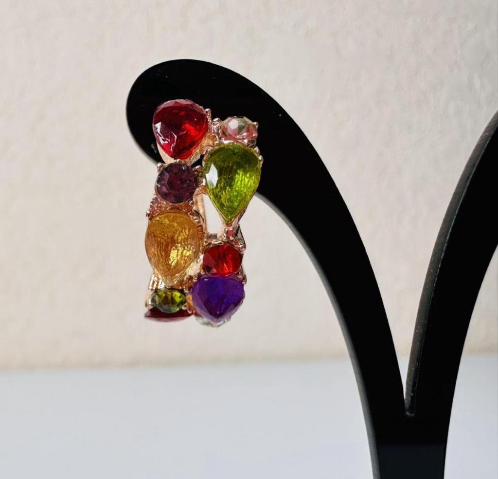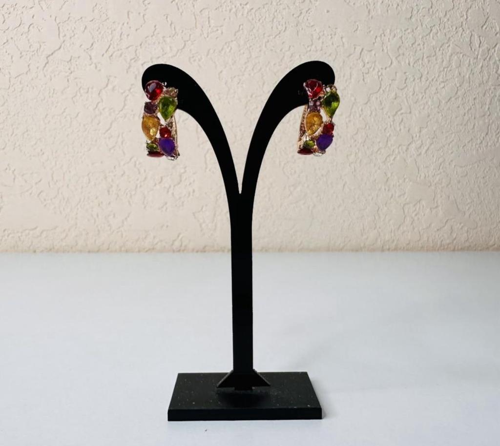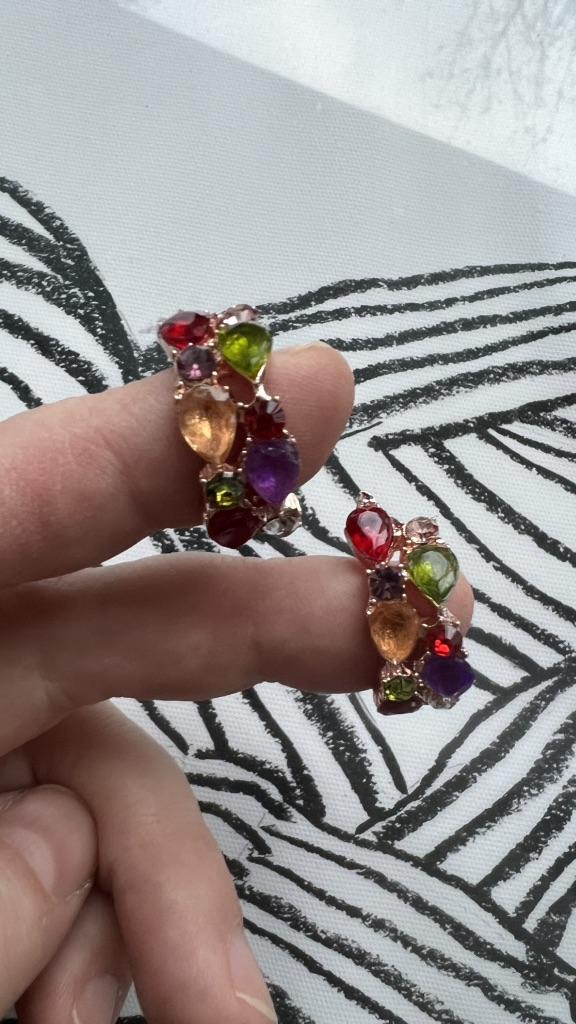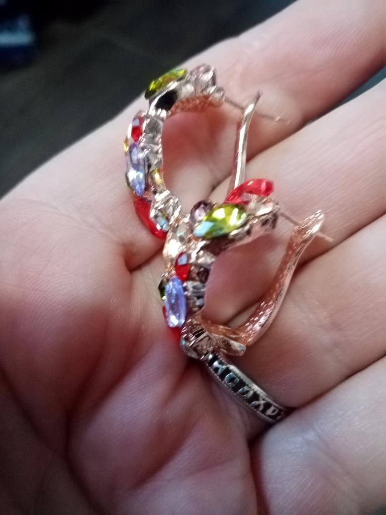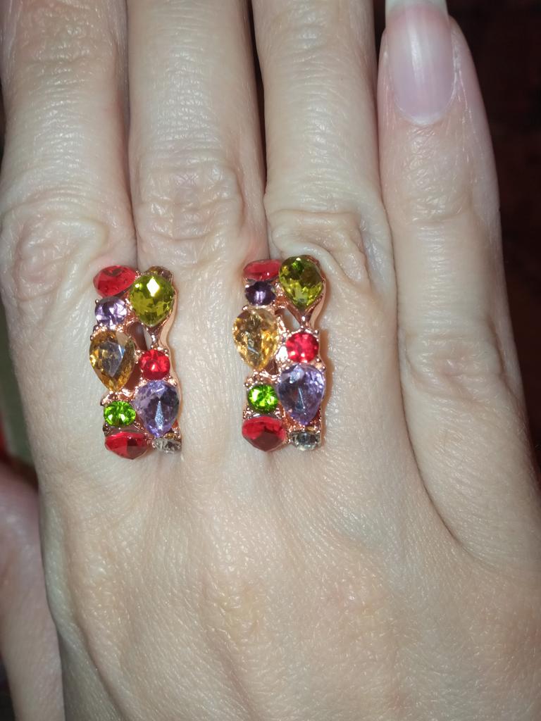 EARRINGS Earrings with splendid colored crystals!🤩 arrived in Italy with tracked shipping in 20 days in a combined package. Fast shipping. Well wrapped in a sheet of bubble wrap, they arrived intact. packaging: They are supplied in a plastic bag without the cardboard backing. Excellent value for money. The metal color is gold in zinc alloy. Back closure: sturdy metal with silicone caps. No glue stains and no defects. the crystals are well set and luminous The purchase is recommended👌👌👌👌👌