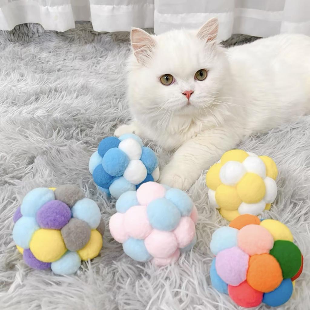 1PCS Cat Toys Cat Plush Ball Toy Pet Elastic Bell Ball Self Hi Ball Playing Cat Colorful Woolen