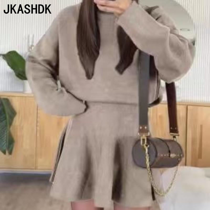 JKASHDK Women's Fashion Casual Spring Autumn Solid Color Print Long Sleeve O-Neck Trousers Pants Suits
