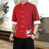 Embroidery Crane Short Sleeve Shirts Men Traditional Casual Tang Suit Cardigan Men Chinese Style Retro Kung Fu Blouses Men