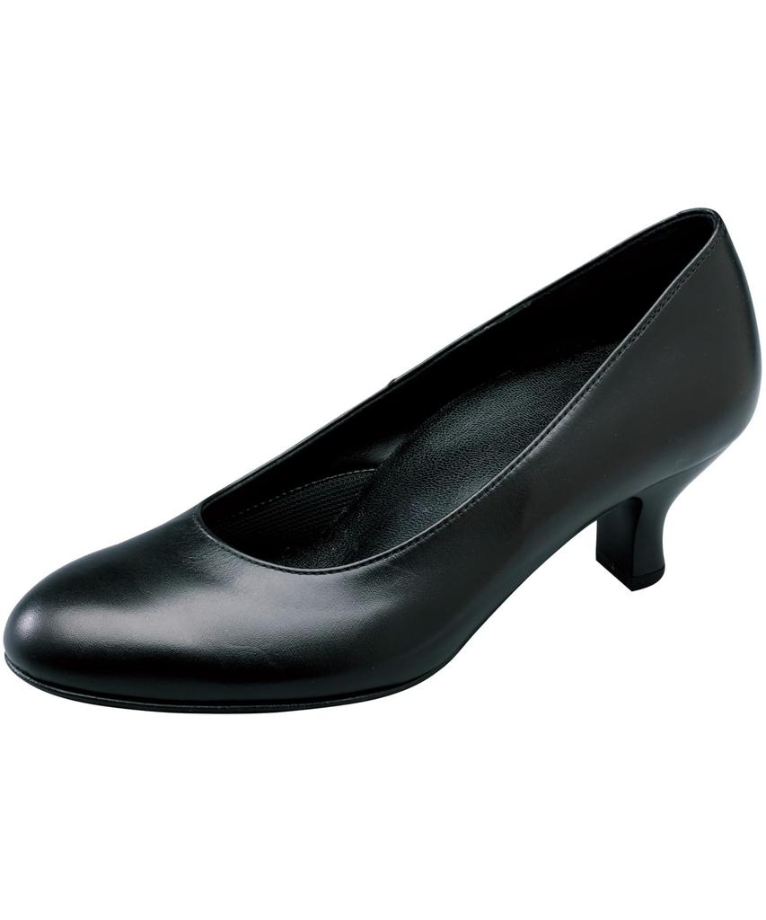 SUCCESS WALK Women's Round Toe Pumps, 5cm Heel, D-3E, Cowhide Leather, WFN560, Black, Size 25cm D
