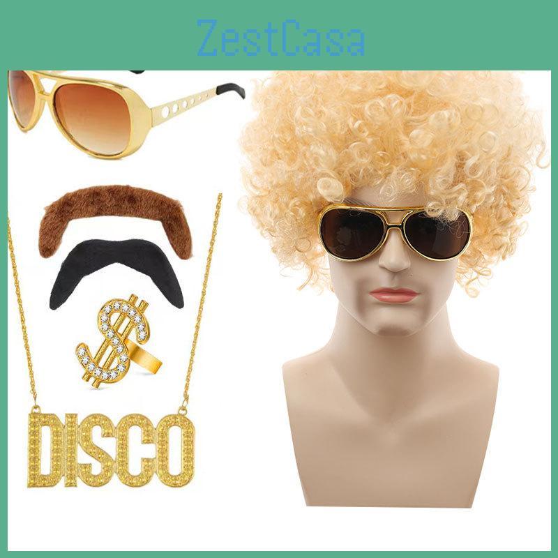 Eye-Catching Style: Stand out at any festival or party with this unique punk wig complemented by bold disco glasses and a trendy necklace.