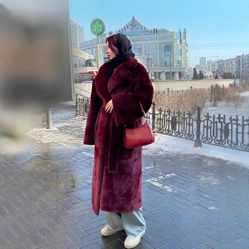 Fur Autumn and Winter Environmentally Friendly Imitation Rabbit Fur Jacket Women's Long Belt Temperament Coat