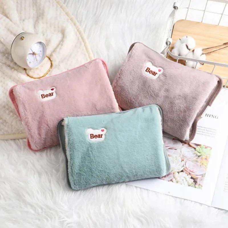 Electric Hot Water Bag 500W Fast Heating Plush Cover EU Plug Auto Shut Off Portable Warmer for Winter Hands Bed Warm