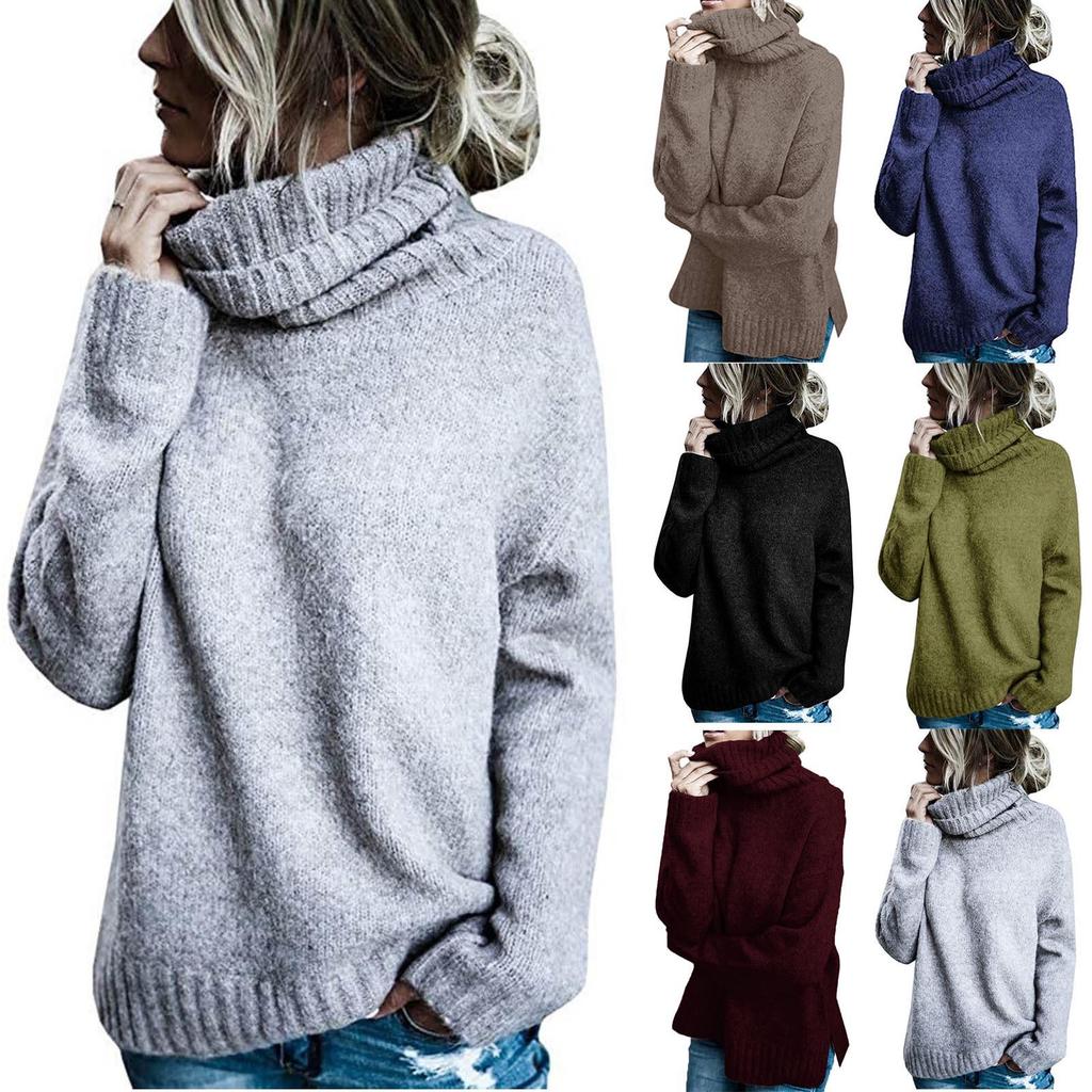 Womens Fashion Solid Long Sleeve Sweater Loose Turtleneck Knitting Sweater