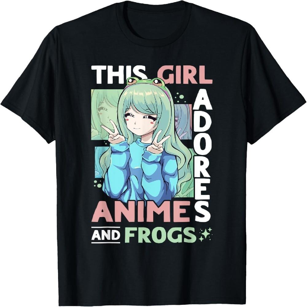 Anime Girl Adores Anime and Frogs Teens Girls T-Shirt