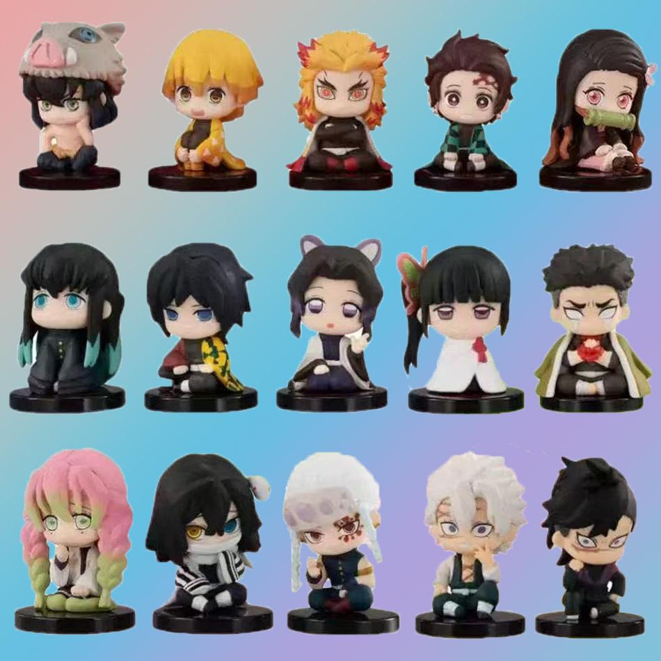 Model Doll Gifts Demon Slayer Figure Toy Anime Kimetsu No Yaiba Q Version Sitting Tanjiro Nidouzi Inosuke Zenizu PVD Figurine