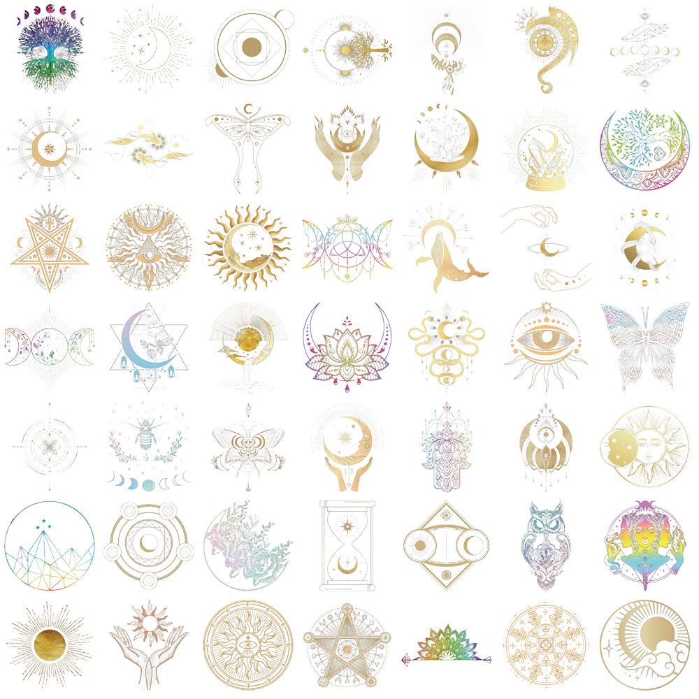 50CS Golden Celestial Body Aesthetics PET Transparent Stickers Graffiti Phone Guitar Laptop Suitcase Waterproof Sticker Kids Toy