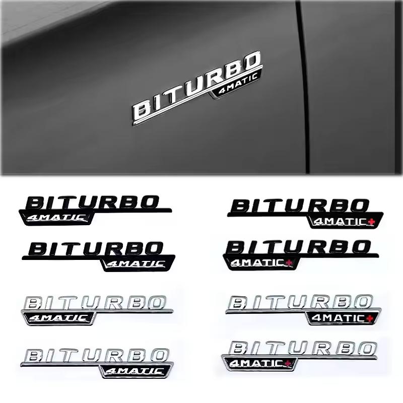 2pcs Car Letters Fender Trim Badge BITURBO 4MATIC Plus Emblem Sticker For C43 E43 GLE43 GLC43 W205 W213 Accessories