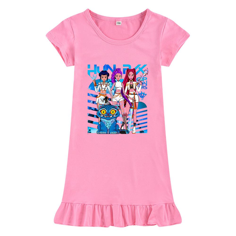 M1231 Kids Girls Kpop Rumi Zoey Mira Print Short Sleeves Ruffle Dress
