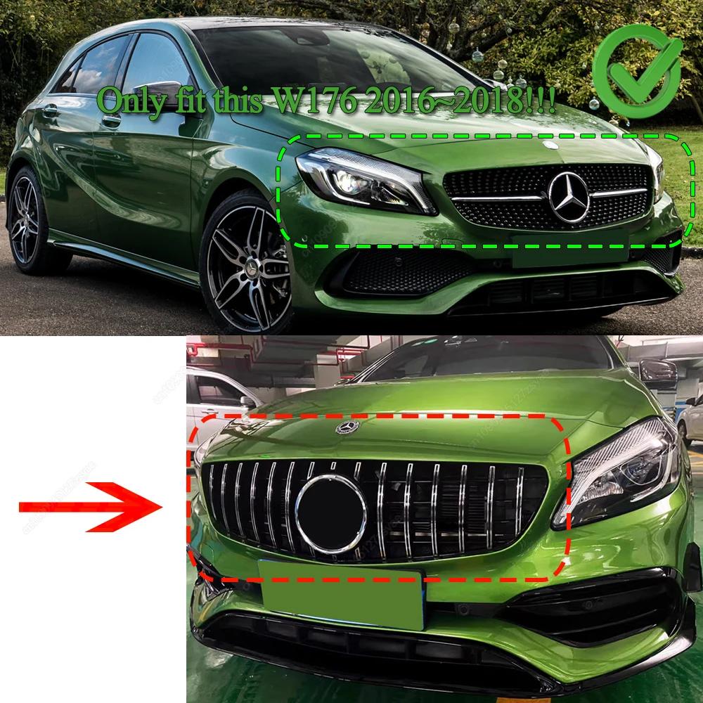 GT Style Front Grille Bumper Grill For Mercedes Benz W176 A160 A180 A200 A220 A250 A45 AMG Facelift 2016-2018 Gloss Black Tuning