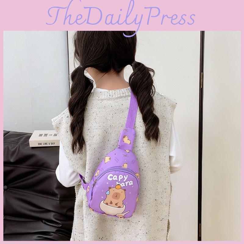 This toddler cartoon capybara crossbody bag features a lightweight nylon construction, It offers a fun, versatile design with vibrant colors suitable for children and a soft polyester lining for added durability. Its lightweight build supports daily use for preschoolers and is easy to clean with a damp cloth.