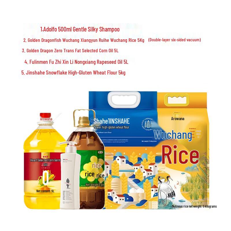 Adolph Silky Smooth Shampoo 500ml with Rice, Cooking Oil & Flour Bundle