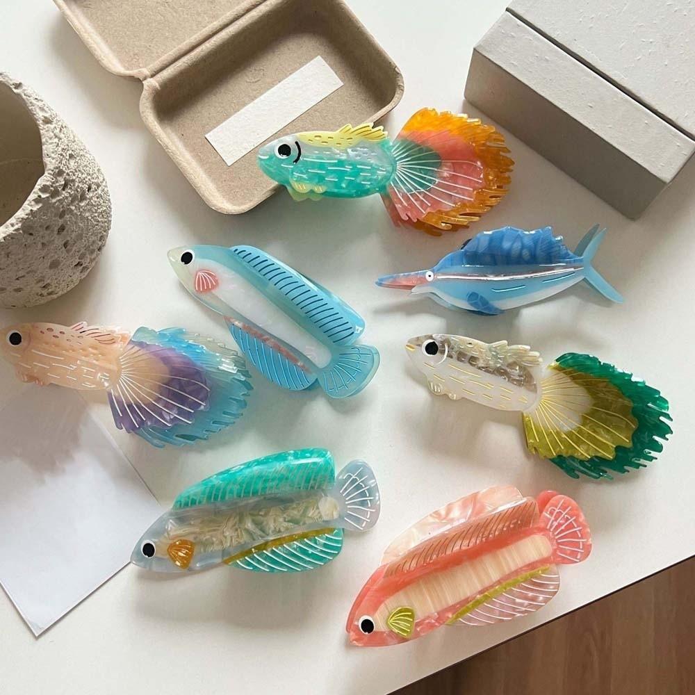 Acrylic Silver Arowana Shark Clip Fish Acetic Acid Hair Claw Personalized Guppy Hair Claw Female