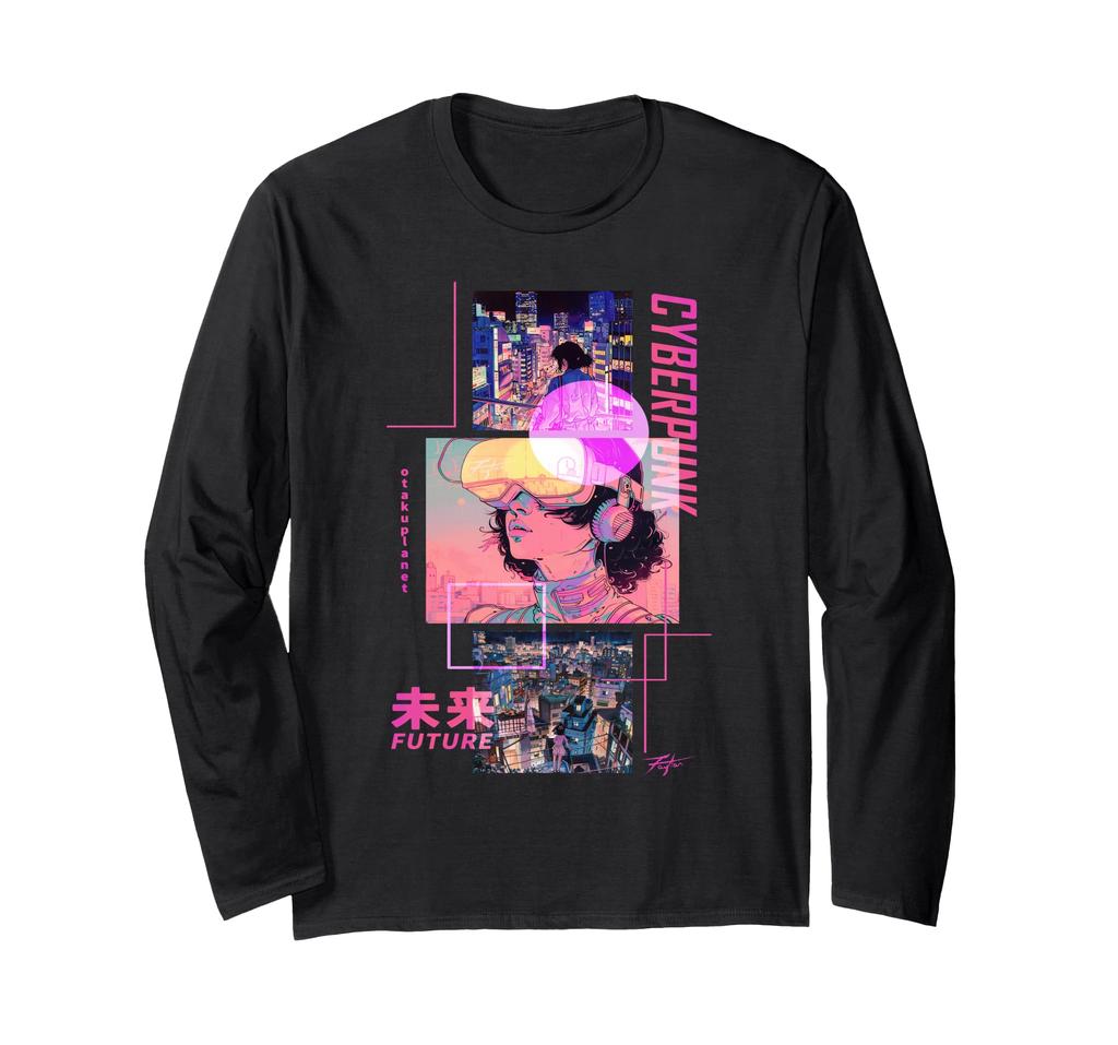 Japanese Cyberpunk Anime In Retro Futuristic Vaporwave Aesthetic Long Sleeve T-Shirt