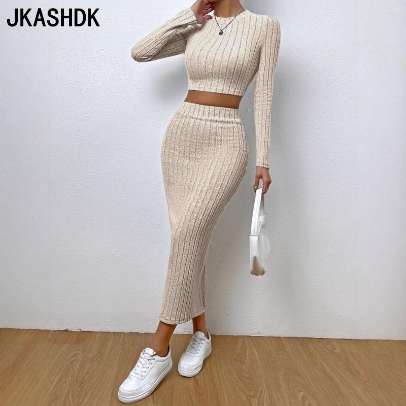 JKASHDK Women's Fashion Casual Solid Color Print High Waist Skirt Suits