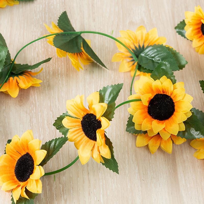 2.5M Yellow Sunflower Vine Hanging Artificial Flowers Garland Leaves Fake Silk Flowers For Party Wedding Home Decoration