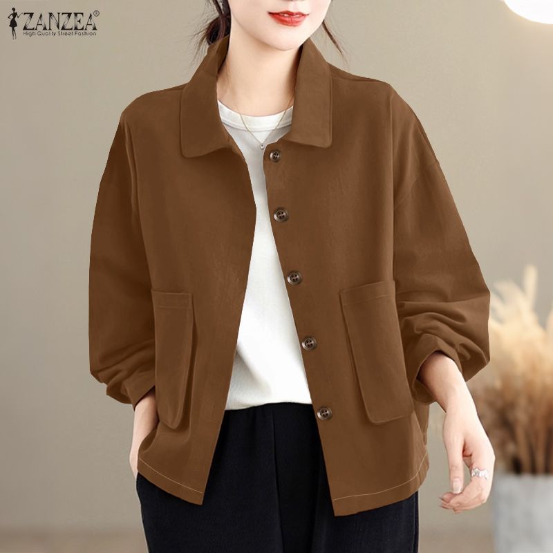 ZANZEA Women Casual Turn Down Collar Loose Long Sleeve Blouse