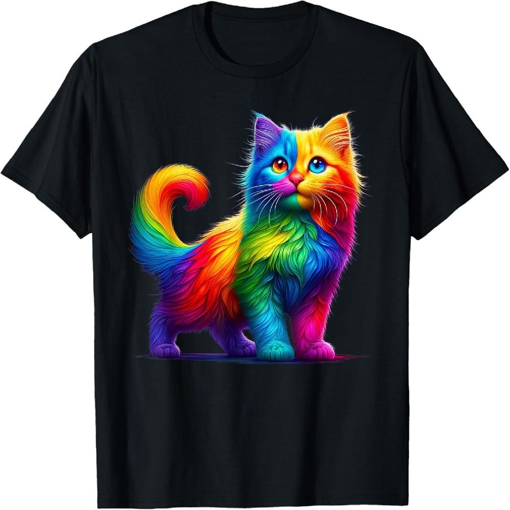 Colorful Cat for Women's Girls Men Boys - Cute Rainbow Cat T-Shirt