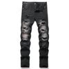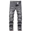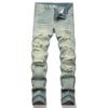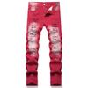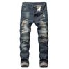 Men's Distressed Straight-Leg Slim-Fit Non-Stretch Denim Jeans Ripped Long Pants