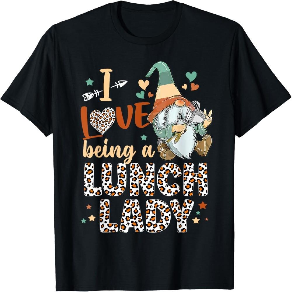 Cute Gnomes I Have Being A Lunch Lady With Leopard Pattern T-Shirt