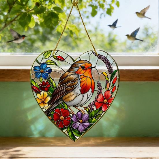 Capture the serene beauty of nature with this bird suncatcher, featuring a radiant bird design with shining feathers and a poised posture. Inspired by stained glass art, it showcases intricate patterns and subtle color transitions that create a soft, elegant look even without direct light.