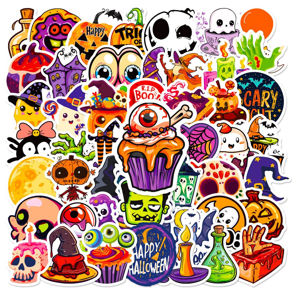 50pcs Halloween Stickers, Graffiti Cartoon Horror Decals, Decorative Waterproof Stickers for Water Cups and Trolley Cases Gifts