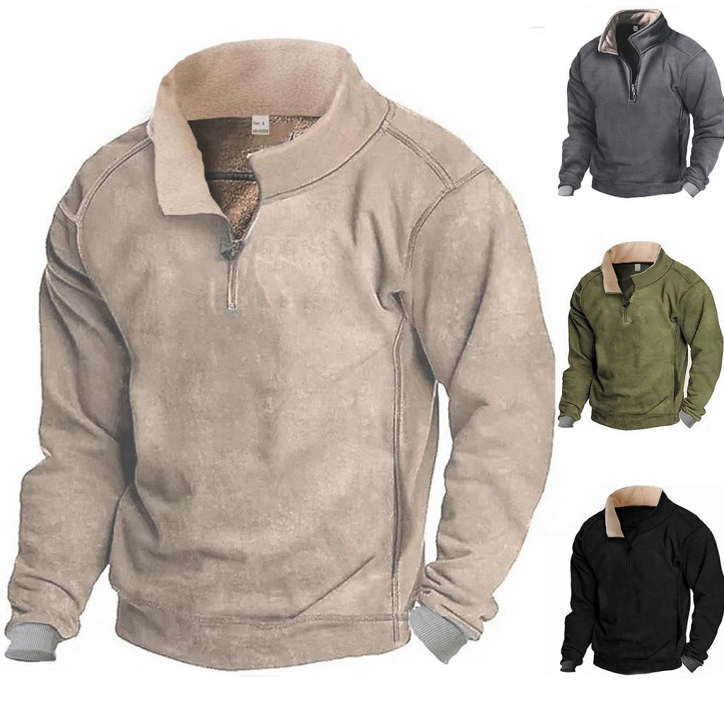 Slim Personality Autumn Winter Casual Stand-up Collar Zip Long-sleeved Pullover Men Moisture Wicking Not Easy To Deform Warmth Heat Breathable Tops