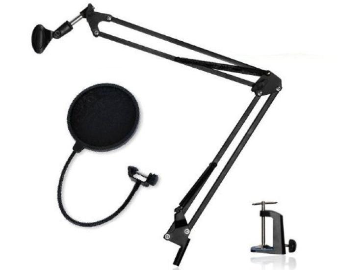 Desk Arm Tabletop Microphone Stand Pop Blocker Black + Set, Extendable,