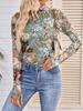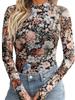 Turtleneck Long Sleeve Lace Floral Mesh Undershirt Top Women's