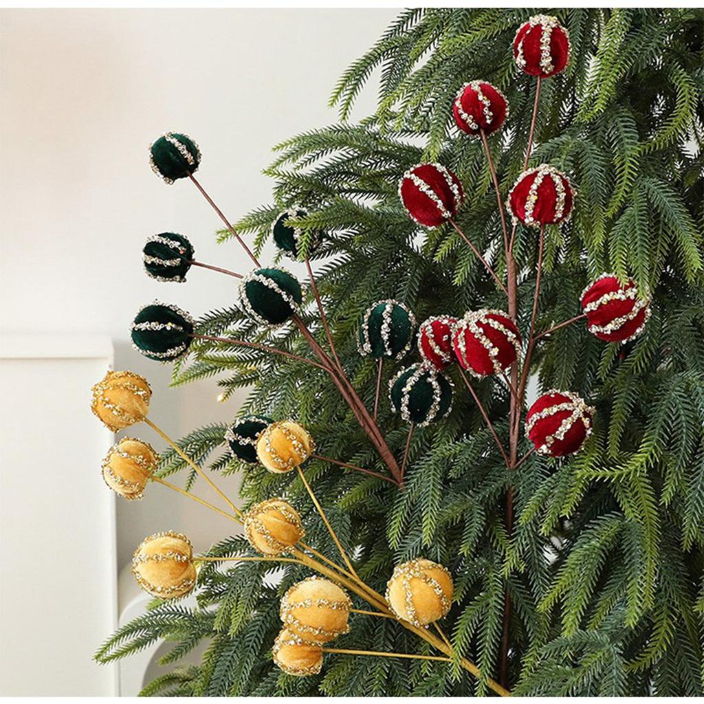 Velvet Christmas Ball Cuttings For Christmas Scene Arrangement, Christmas Tree Decoration, Simulated Berry Ball Cuttings.