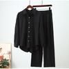 Summer Outfits for Women Fashion Loose Elastic Wrinkle Long Sleeve Shirt Wide Leg Pants Casual Set for Women 2 Piece Set