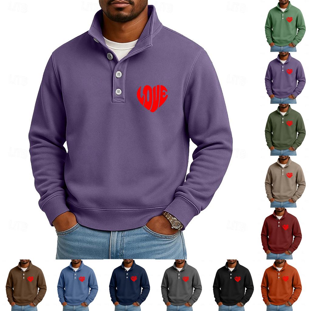 Men's Casual Stand-Up Collar Long-Sleeve Top Print Button-Down Sweatshirt