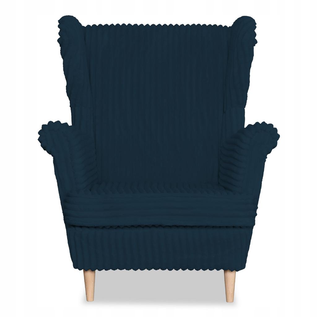 Fotel uszak Rene skandynawski Family Meble niebieski sztruks paski modny