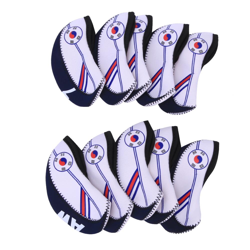 10Pcs Portable Cloth Golf Iron Club Head Cover with Unique Pattern Sports Accessory